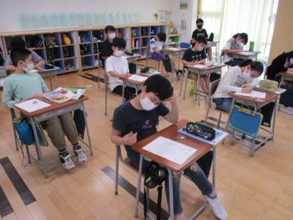 5時間目に6年生教室を訪れると、租税教室のワークシートを記述しているところでした。今日の講演を聴いてどんな感想をもつのか、とても興味深いです。