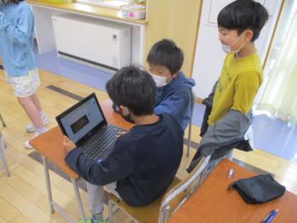 3時間目の4年生教室では、各係に分かれて、活動の目標決めをしているところでした。