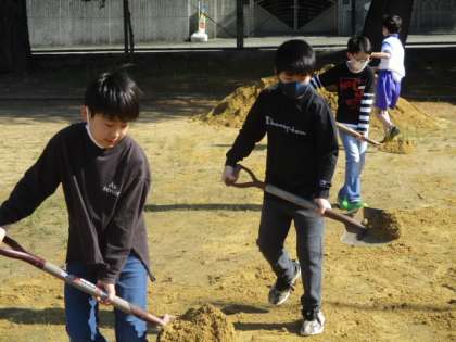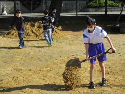 6年生ばかりではなく、他の学年でも積極的にボランティアをしてくれています。写真はグラウンド整備をしてくれている様子です。