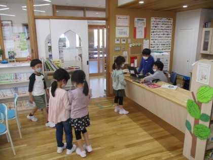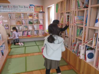 図書室では、たくさんの児童がお気に入りの本を探していました。1年生でも「漢字が読めるよ」と教えてくれました。