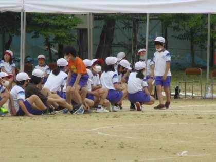 高学年のリレーが予行最後の種目でしたが、今日は走りませんでした。結果は当日までのお楽しみです。入退場の練習のみ行い、閉会式の練習を済ませて今日の予行は終了しました。