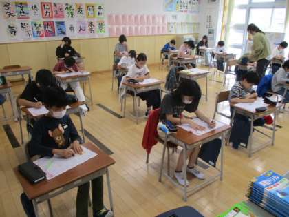 5年生の3時間目は国語の授業で、「なまえをつけてよ」のテストの真っ最中でした。「テストは戻ってきてからが肝心」と言う人もたくさんいます。間違ったところは身に付いていないところでもありますから、しっかりおさらいしましょう!