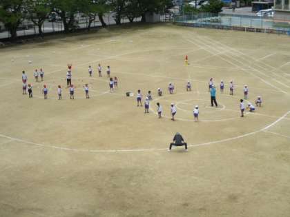 1,2年生の3時間目は体育の授業でした。もうすぐになった運動会に向け、リレーと「やってみよう(ダンス&玉入れ)」の練習に取り組みました。天気予報ではこれから雨模様になるということですから、グラウンドを使った練習は貴重です。