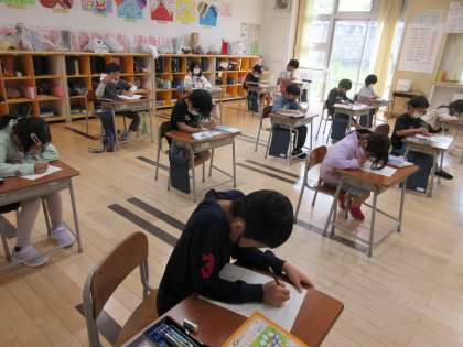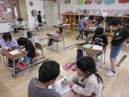 算数名人さんからの問題に挑戦しています。昨日は、「レベル3」でした。一生懸命に問題に取り組み、課題をクリアした子供から、友達にやり方のヒントを教えています。