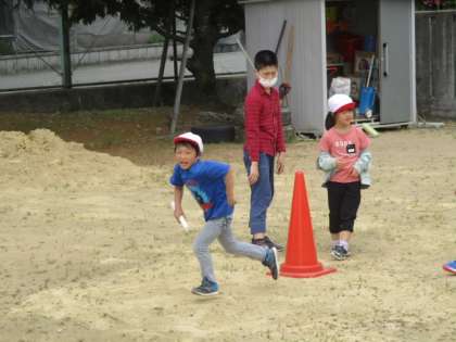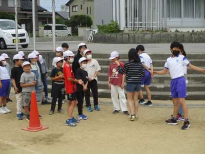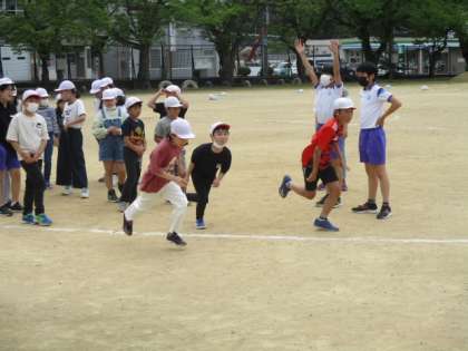 白団はグラウンドに出て、リレーの練習をしました。低学年と中高学年に分かれ、それぞれのリレーの方法に合った練習をしていました。