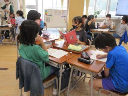 5年生は国語科で、話す・聞く学習をしていました。輪番で話し手、聞き手、記録者となり、スピーチやインタビューをしています。相手の思いを引き出すインタビューが、さすが5年生だと感じました。