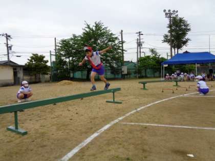 5、6年生の団体競技は「走って跳んで!上滝マリオブラザーズ」です。競技内容については以前お伝えした通りですので、前の記事を参照ください。