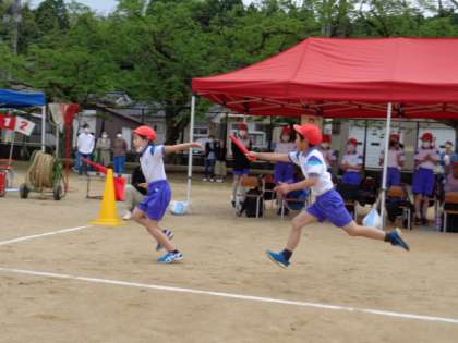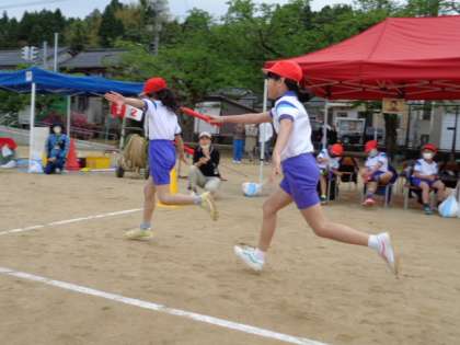 中学年リレーの赤団です。