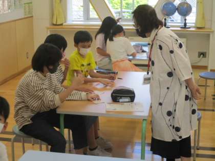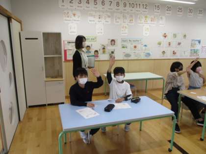 英会話クラブの様子です。今日は楽しい英語のビンゴゲームをしました。1から9までの数字を縦横3列ずつの枠に書き、先生が発音した数字毎に消していきます。数字の種類があまりないので、直ぐに「ビンゴ!」の人もいました。明るく楽しい雰囲気でした。