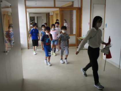 不審者対応で難しいところは、不審者を刺激しないことに尽きますから、全校避難の際に放送で「○○に不審者が現れました」という直接的な表現は控え、全校児童に伝えてある秘密の言葉を使って知らせるようにしています。