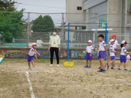 遠くまでボールを投げようと真剣な姿がたくさん見られました。
