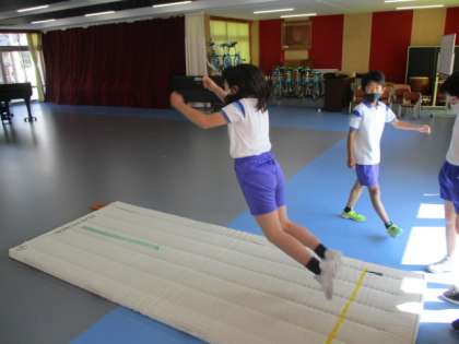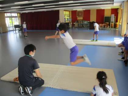 4年生は、さわやかタイムの時間を使って「さわやか体育」でした。今日はみんなの広場で、立ち幅跳びに挑戦です。しっかり記録も取りますので、がんばって跳んでくださいね。