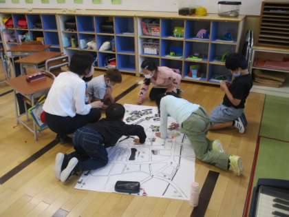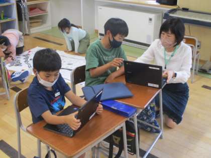 3年生の5時間目は社会科の授業でした。「ブラかみだき〜歩いて、見て、聞いて、みりょくを見つける〜」というテーマで、上滝地区の魅力を発信していこうとしているようです。今日は早速、PCを使ったり校区の地図に写真を貼ったりする作業をしていました。