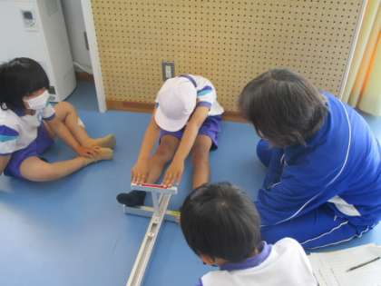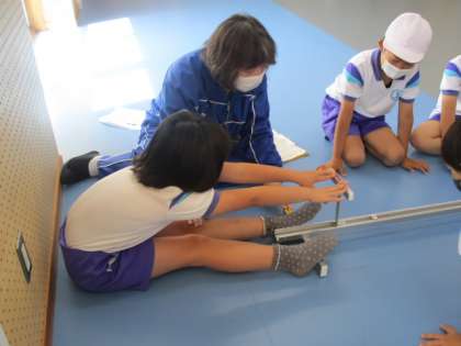2年生の今朝は「さわやか体育」でした。この時間には、スポーツテストの長座体前屈を実施しました。「ぼく、27センチだったよ」という感じで、嬉しそうに自分の記録を話してくれました。