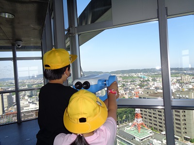 市役所展望塔に上りました。天気がよく、富山市全体を見渡すことができました。あまりの高さに足がすくんでしまう子供もいました。