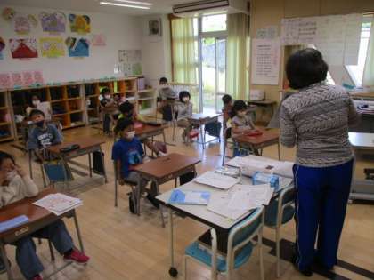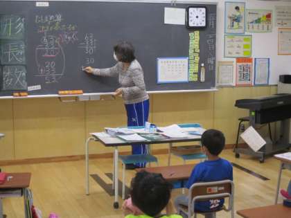 2年生の5時間目は算数の授業でした。この授業で学習した内容は、筆算のたしかめ算です。自分で求めた差が正しいのかどうかを、ひき算の逆のたし算で確かめることなどを習いました。