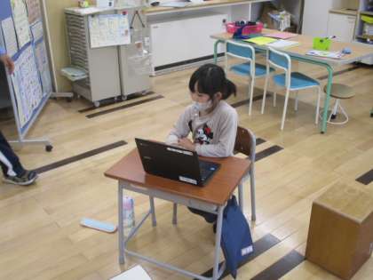 5時間目のひまわり級では、先生と児童が教室の外と中に別れ、クロームブックを使ったネットミーティングの練習をしていました。このようなICTのスキルは、これからを生きていく子供たちにとって必須となると考えられます。幼いうちからこの様な経験を積むことができ、将来が楽しみです。