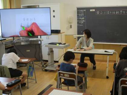 5年生の5時間目は音楽の授業でした。この授業では「ト音記号」や「ヘ音記号」について学びました。