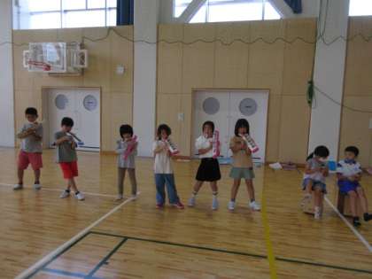6月の歌は「おはようクレヨン」です。明日予定されていたミュージックタイムの発表に向けて練習しました。クレヨンが箱の中から出てきて、食べ物や食器に変身する素敵な歌です。残念ながら、明日のミュージックタイムは中止になりましたが、次回のミュージックタイムに向けて、がんばっています。また、5月の歌「いいことありそう」は、楽器とダンスで盛り上げることもします。