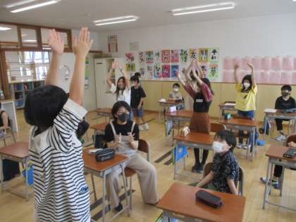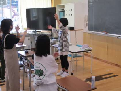 5年生教室をのぞくと、ミュージックタイムではお馴染みの「3時のおやつ」をやっていました。どの児童も真剣そのもので、ゲームに負けて本当に悔しそうにしている様子が見られました。