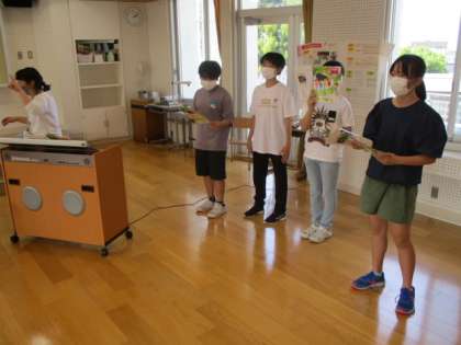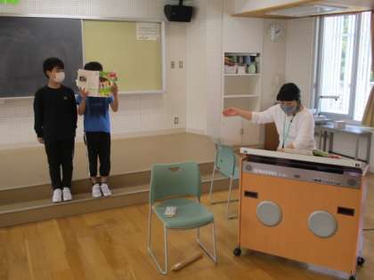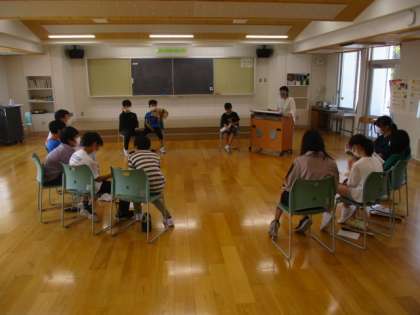 6年生の5時間目は音楽の授業でした。ちょうど音楽室を訪れた時には、歌の練習を始めるところでした。歌詞を幾つかの部分に分け、少人数で歌っていきます。思春期をむかえ、みんなの前で歌うことには少しは抵抗があると思いますが、しっかりと歌えていたことに「立派だなぁ」と感心しました。