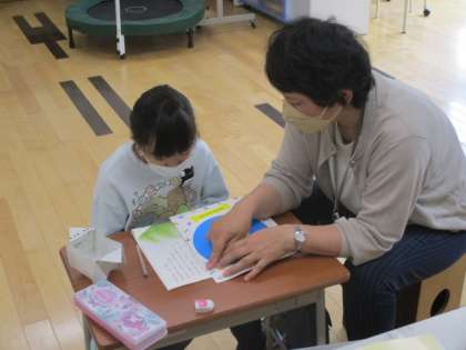 ひまわり級の1時間目は国語の授業でいた。この授業では、担任の先生と一緒に音読の練習をしました。