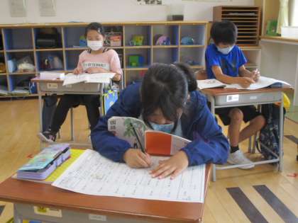 児童それぞれが自分のペースで学習を進めていたため、とても集中している様子でした。また、分からないところがあった場合には、担任の先生ばかりでなく補助の先生がついていることも、児童が学習をすする際に心強いのかもしれません。