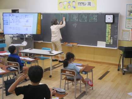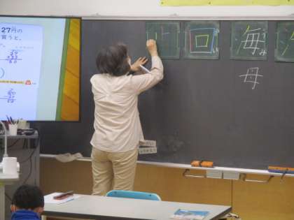2年生の1時間目は国語の授業でした。今日の授業は漢字の練習です。「線」「汽」「毎」「回」「歩」などの漢字を習いました。その中で「歩」の漢字を習っている時、上の「止」の部分の書き順を教えてもらっていたら、「『正』の上1本がないんだ」という素晴らしい発言がありました。私自身「目から鱗」でした。子供の発想って柔軟だなと感心させられた出来事でした。
