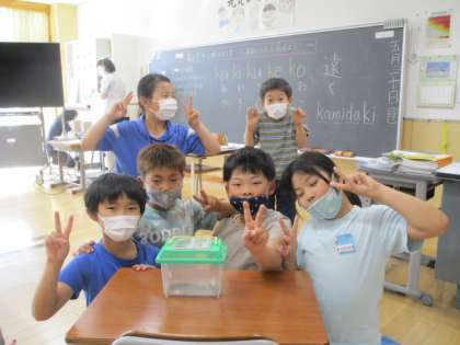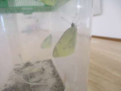3年生が育てていたチョウのさなぎが、今朝、登校してみるとチョウになっていました。しかも6匹もいました。しばらく観察した後は、逃がしてあげる予定です。