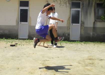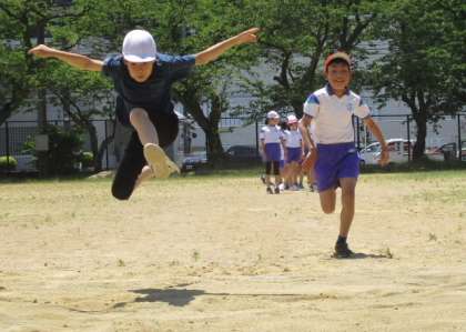 5年生の3時間目は体育の授業でした。今日取り組んだのは走り幅跳びでした。踏み切る際に高く跳ぶことを意識しました。写真からは高さが増したように見えます。