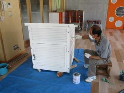 学校の正門西側に百葉箱があります。この百葉箱はかなり老朽化が進んでいて、3月の強風の日に壊れてしましました。百葉箱は理科の授業で使うこともあり、購入も考えたのですがかなりの高額のため、旧の上条小学校の物を貰えないか問い合わせたところ、譲っていただけることになりました。しかし、貰った百葉箱の方もかなりの年期物だったため、今、用務員さんが修復をしています。もう少しで完成ですので、来校の際はご覧ください。