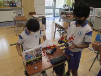 2時間目に4年生教室をのぞくと、理科の「電気のはたらき」で使った模型の工作をしていました。