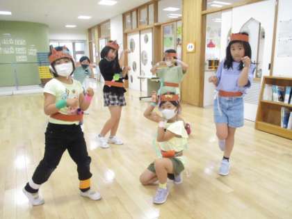 昼休みに1階を歩いていると、ちょっと風変わりな衣装を身にまとった2年生がいたので写真を撮らせてもらいました。「並んで−」とは伝えたのですが、どうやら「決めポーズ」があるらしく、この写真となりました。