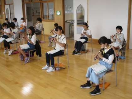 5年生の5時間目は音楽の授業でした。前半は「おはようクレヨン」を歌って、メインはリコーダーの練習でした。今日は高い音を出す練習だったので、左手親指で穴を半分だけ閉じることが課題でした。うまくいかないとひっくり返った様な音が出ますが、上手に音を出せていた児童もたくさんいました。