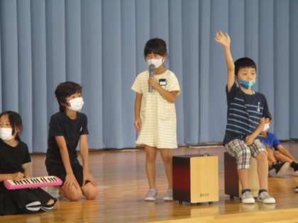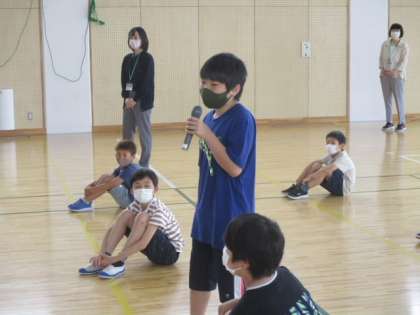 今朝のミュージックタイムでも、たくさんの人がインタビューコーナーに手を挙げてくれました。その内2人が代表して感想を発表してくれました。