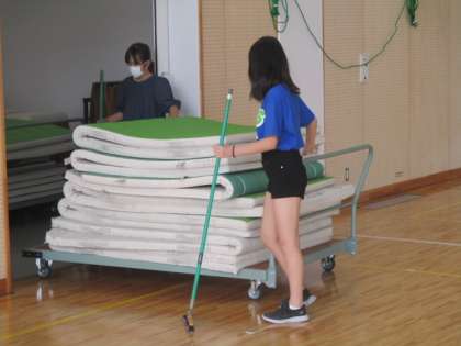 上の写真は、ボランティア委員会の活動風景です。今日のボランティア委員会は早々と話し合いを終え、体育館の清掃に出向きました。今回念入りに行ったのは、たくさんあるボールの空気入れと器具庫の整理整頓です。明日から使う人は、気持ちよく利用できると思います。