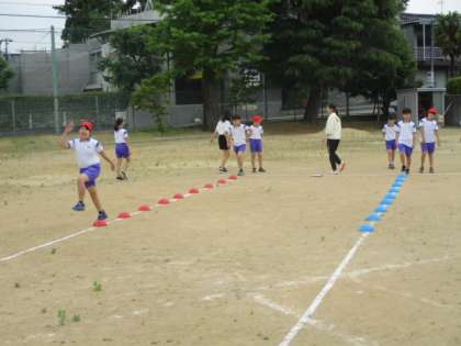 今朝の上学年は「さわやか体育」でした。6年生の分担は50m走でした。時間の前半は地面にマーカーを置いたトレーニングで、後半には50m走を1本走ってみました。