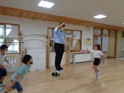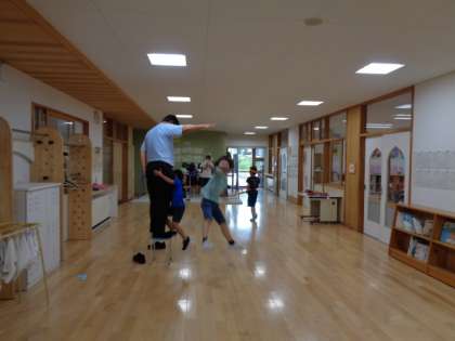 覗いてみると、なんと校長先生が子供たちのジャンプの的になっていました。大喜びで列をつくる子供たち。楽しく遊んでもらって、いつもたくさんお話を聞いてくださる校長先生が大好きな子供たちです。