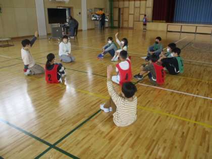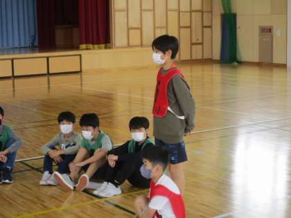 写真上 : 他学年を受け入れるため先に準備する6年生
