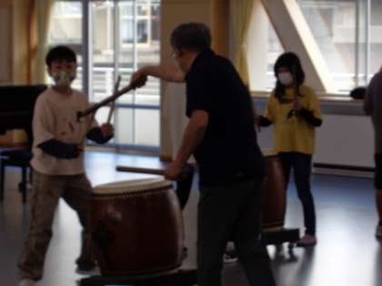 今日はクラブ活動の日でした。和太鼓クラブは、薬師太鼓の基本リズムを一生懸命に練習していました。