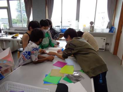 工作クラブは七夕かざりを作っていました。作り方を自分で調べながらつくっている子供もいました。
