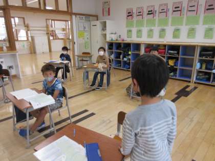 富山市中心部と、岩瀬で見てきたことを、校外学習の日に休んでいた友達に写真を見せながら伝えました。いろいろな土地の様子を学んでいるところです。