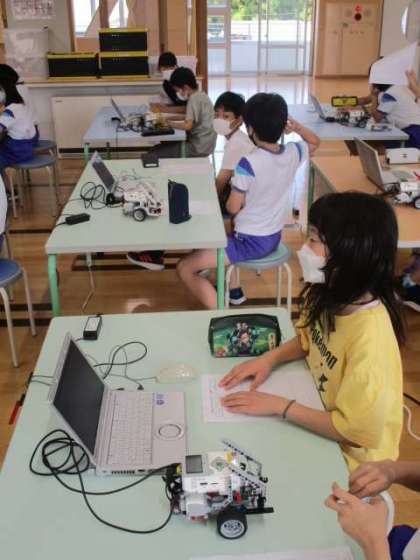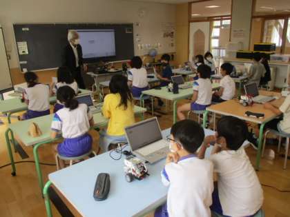 今日の午前中は、講師の先生をお招きしての「プログラム学習」です。1・2時間目が5年生、3・4時間目が6年生の予定です。