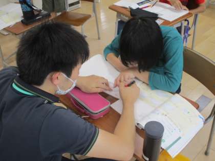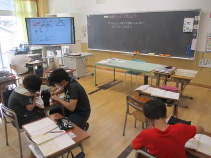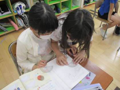 4年生の1時間目は算数の授業でした。今日の学習では分度器を使って角度を描いたり、角の大きさを測りとったりしました。