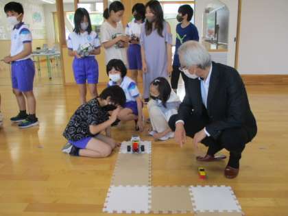 何度も何度も失敗を繰り返し、何度も何度もプログラムを修正していきます。正に「試行錯誤」の連続です。そして遂に課題をクリアしていくチームが出ました。(写真下)試行錯誤の様子とクリアの様子を動画でアップしましたのでご覧ください。