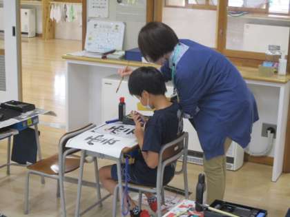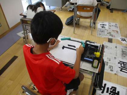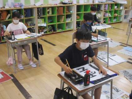 4年生の5時間目は書写の授業でした。今日は「雲」という字に挑戦です。先生の指示に従って1枚目の紙に「1」と書き込みました。これはこの授業の最後に書いた作品と比較するためです。実際、授業の最後に比較をしてみて「今日の練習で成長したなー」と実感できたでしょうか。
