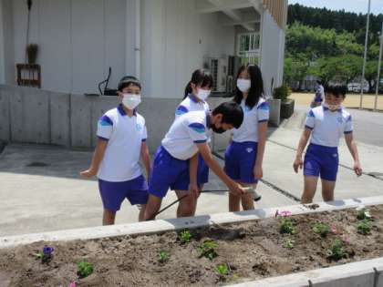 先週から、学年ごとに担当する花壇の草むしりをして、花の苗を植えています。