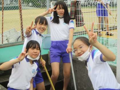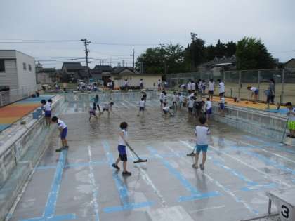 プール掃除は大変な作業です。砂や排水を運ぶのは重いし、1年間溜まっていたプールの水は臭います。しかしそんな大変な作業中であっても、前向きに頑張る子どもの姿は素敵です。「どうせやるなら楽しもう!」という気持ちが写真からも伝わってきます。
