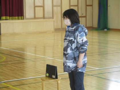 リハーサルを終えると、今日の出来について担任の先生と振り返りをしました。(写真上)また、見てくださった先生からアドバイスもいただきました。(写真中)最後には、クラスの代表が「みにきてくださって、ありがとうございました。」としっかりお礼を言うことができました。(写真下)