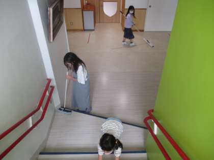 今日の給食後は、縦割り班の清掃でした。児童それぞれが自分の担当場所をきれいにします。
